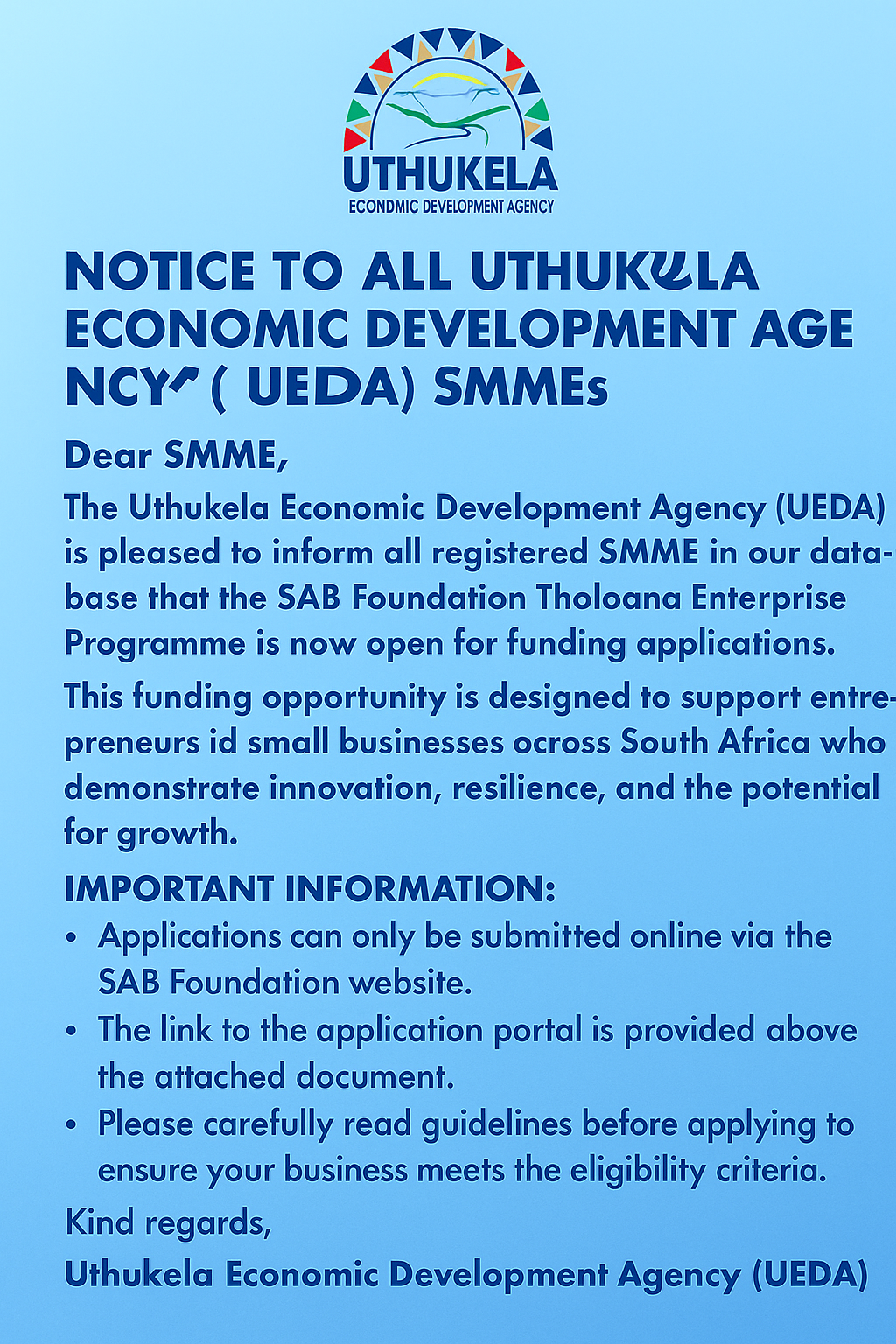The UThukela Economic Development Agency is pleased to announce the availability of vacant land within our District. | 2025/09/05 | Download |