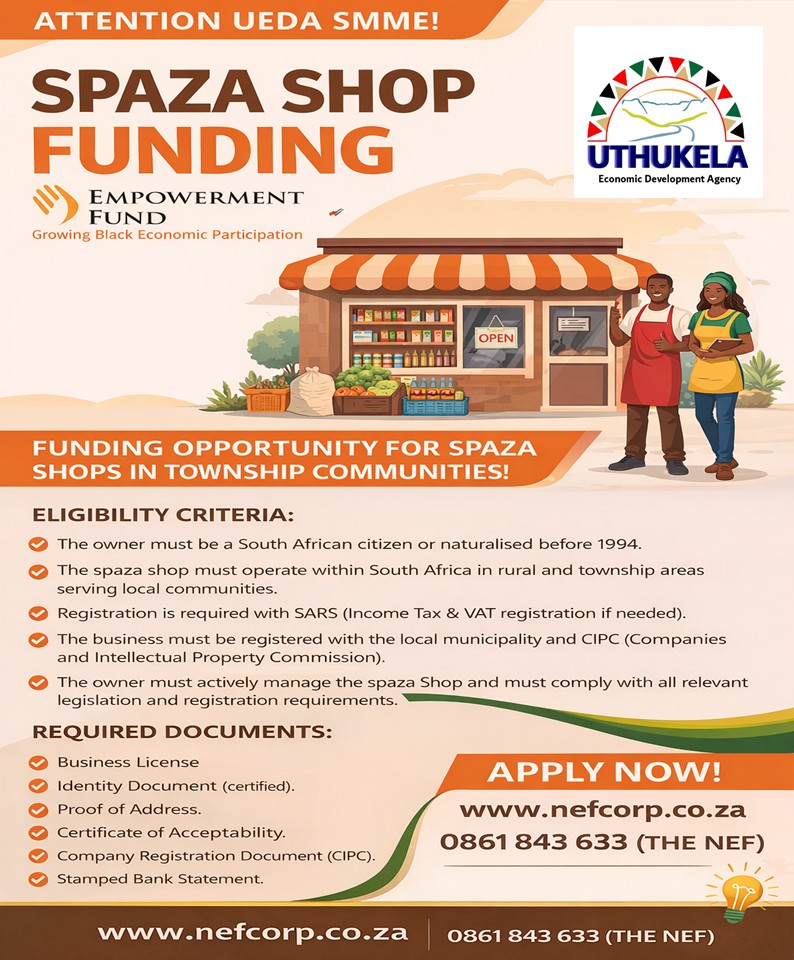 | SPAZA FUNDING APPLICATION, FOR MORE INFO CONTACT MR LUTHULI@065 711 8331 | 2026/02/05 | Download |